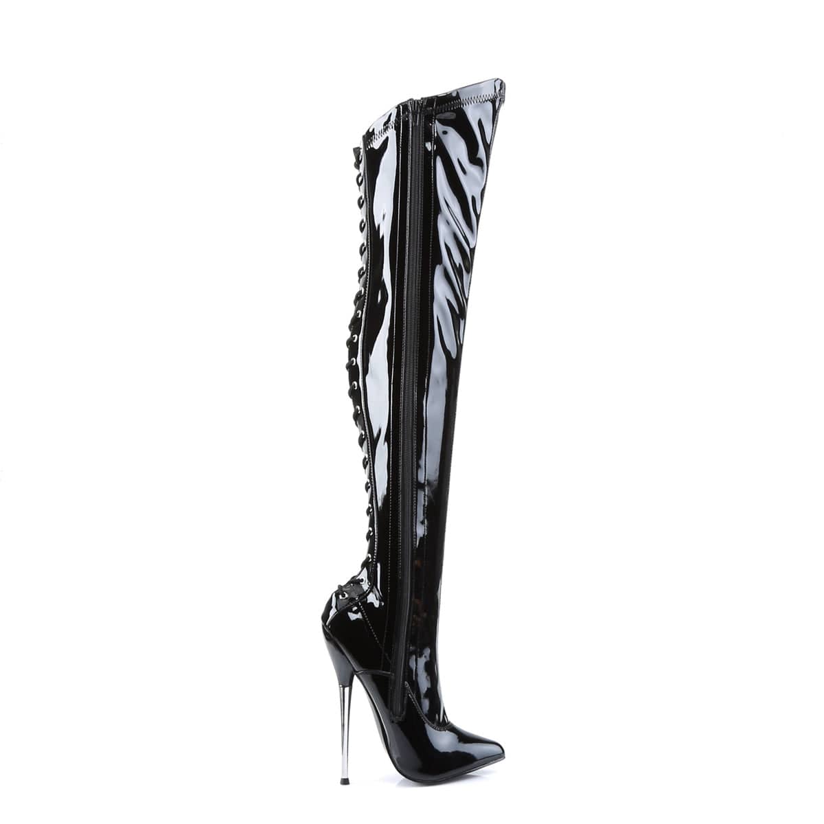 Dagger 3060 Black Patent Thigh High Boots by Pleaser Shoes