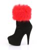 6″ (152mm) Heel, 1 3/4″ (45mm) Platform Ankle Bootie Featuring Fully Wrapped Platform Bottom w/4 Interchangeable, Snap-On Fur Cuffs (Blk, Wht, Red, Fuchsia & B. Pink), Inside Zip Closure