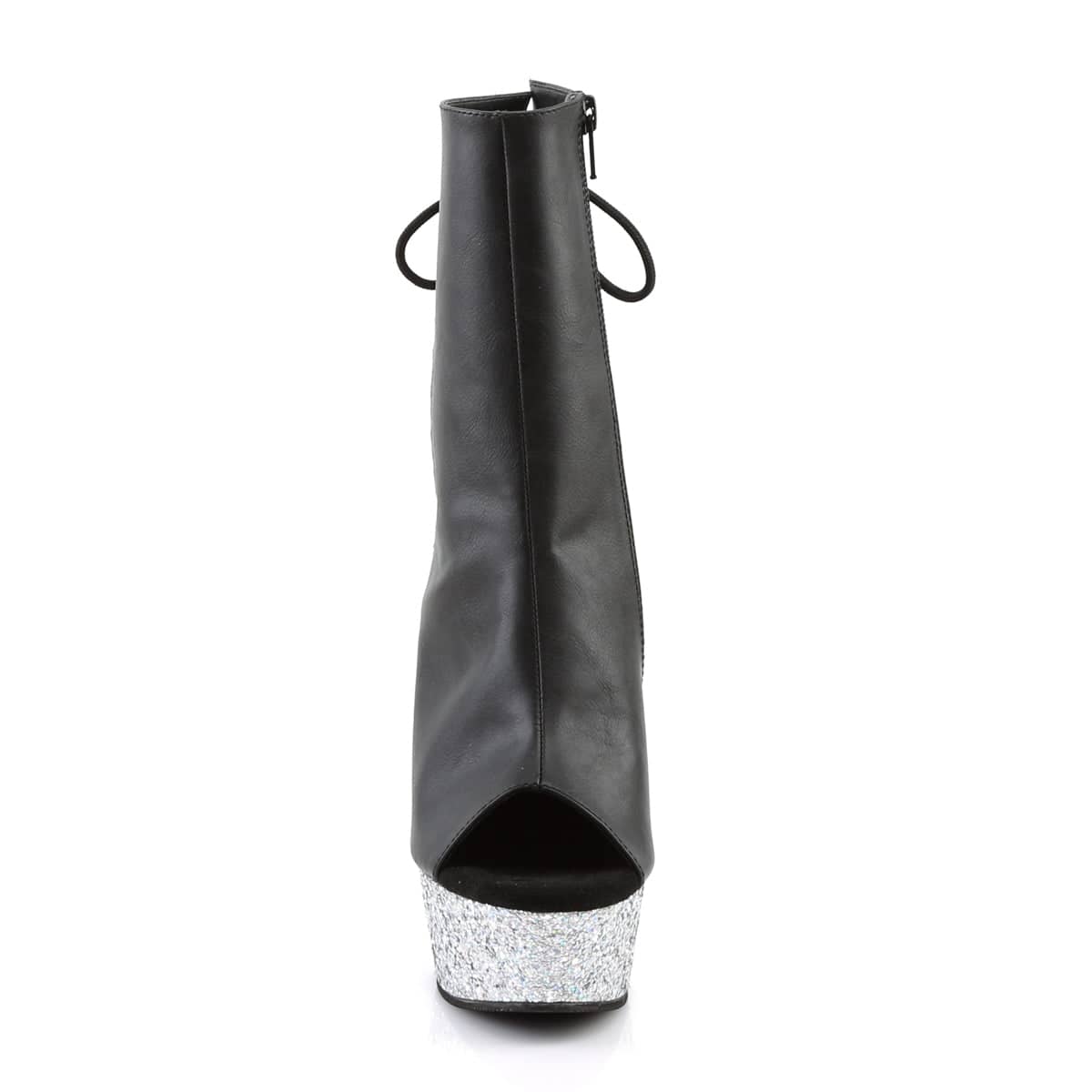 Delight 1018LG Black Matte and Silver Glitter Vegan Ankle Boots by Pleaser Shoes