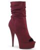 Delight 1031 Burgundy Faux Suede Slouched Ankle Boots by Pleaser Shoes