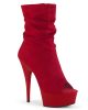 A gorgeous pair of sexy high heels in faux suede fabric that is slouched around the foot for a more casual style. These incredible versatile day to night boots feature a peep toe and six inch heel.