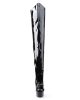 Super-sexy thigh-high boots in black patent from Pleaser Shoes. The asymmetrical knee feature adds extra flattery to these sexy high heels. A black front platform balances the 6 inch (11.5 cm) extra high stiletto heels for an effortless wear.