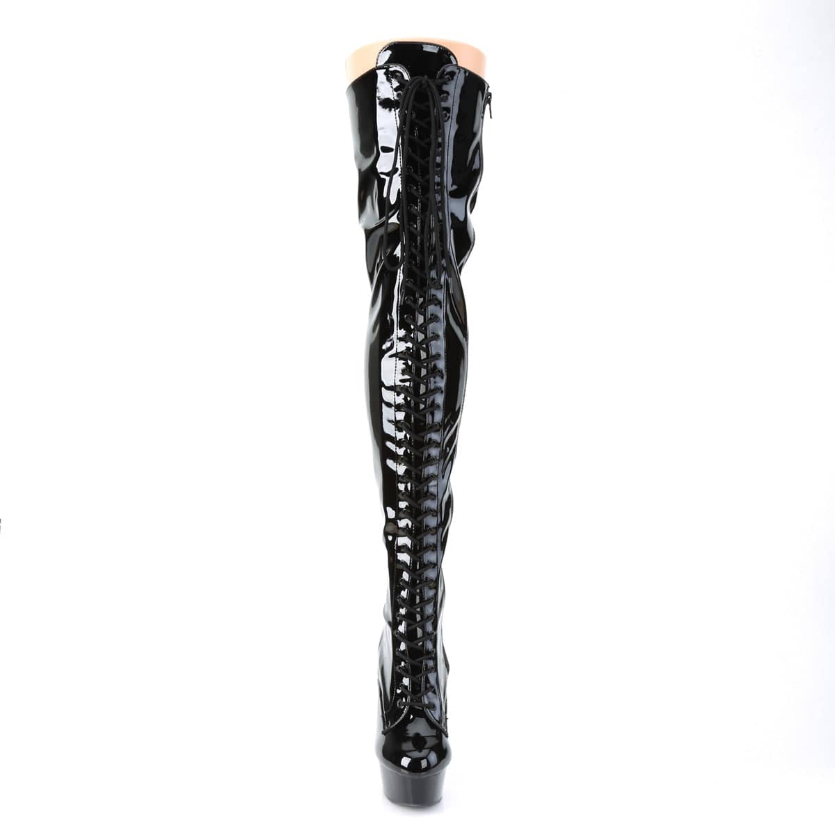 Delight 3023 Black Faux Leather Thigh High Boots by Pleaser Shoes