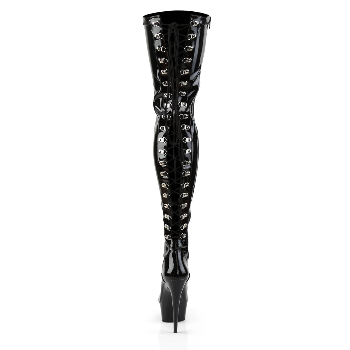 Delight 3063 Thigh High Boots Black Patent by Pleaser Shoes
