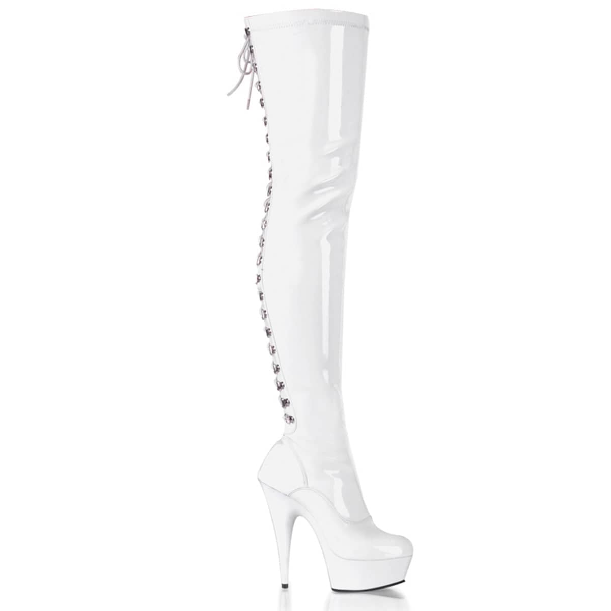 6 (15.2cm) Stiletto Heel, 1 3/4 (4.5cm) Platform Side Lace-Up Back Thigh High Boot, Full-Length Inside Zip Closure