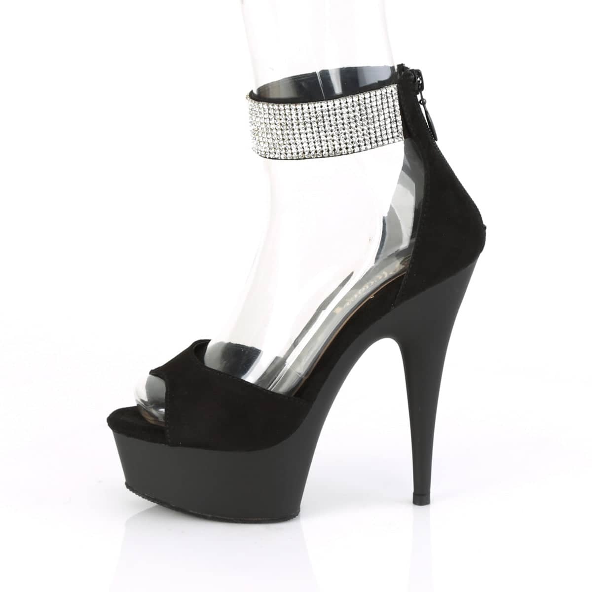 6 (152mm) Heel, 1 3/4 (45mm) Platform Open Toe d’Orsay Sandal Featuring Rhinestone Embellished Ankle Cuff, Back Zip Closure