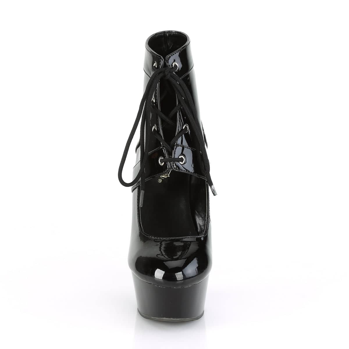 Delight 688 Black Patent Lace Up Ankle Boots by Pleaser Shoes