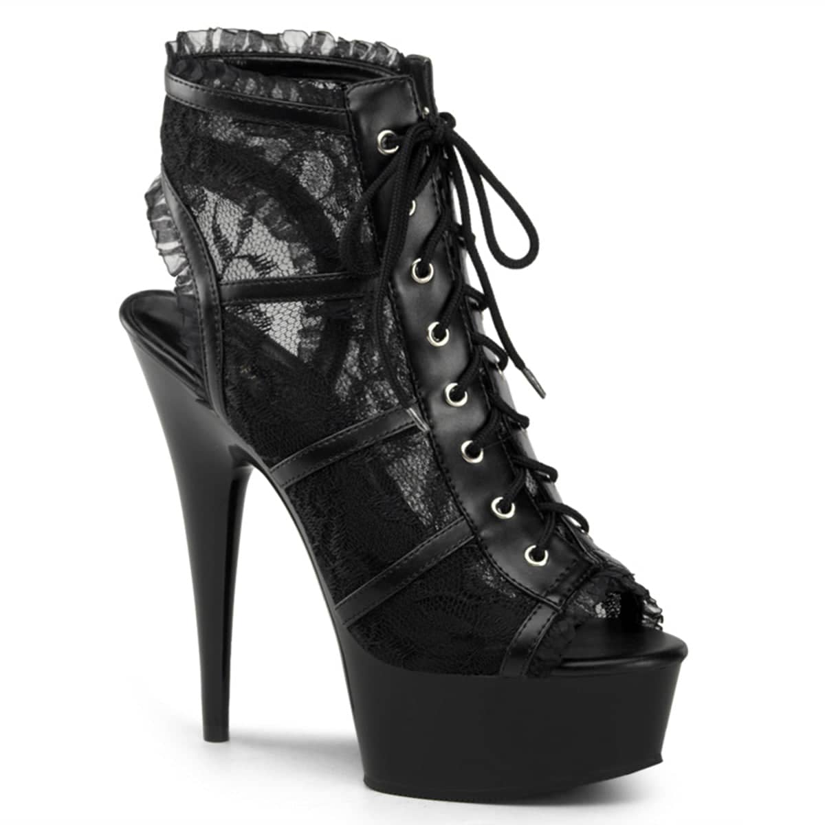 Delight 696LC Black Lace Ankle Boots by Pleaser Shoes