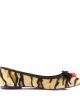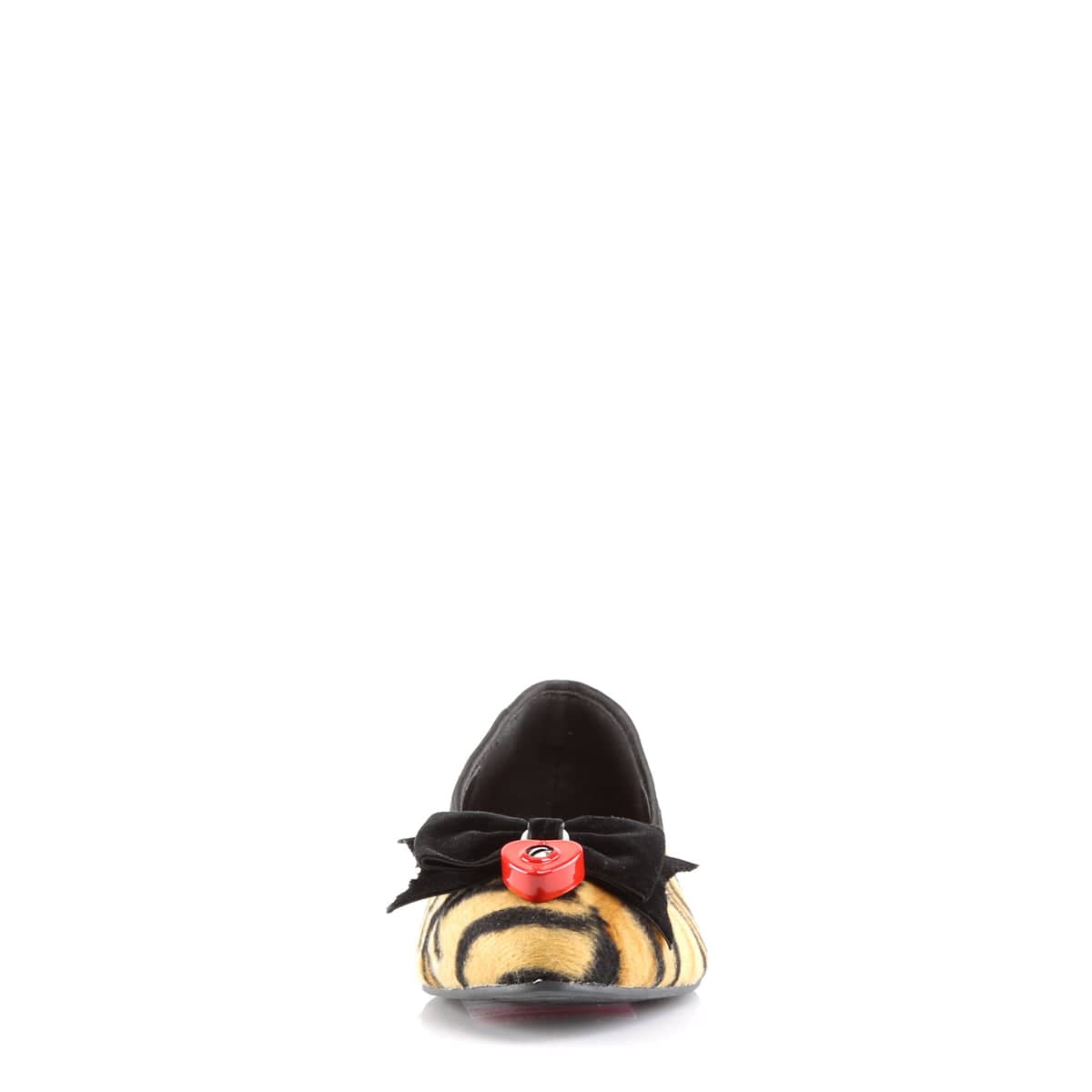 Tiger Print Flat with Bow & Red Padlock on Vamp and Piping Detail and Tiger Print