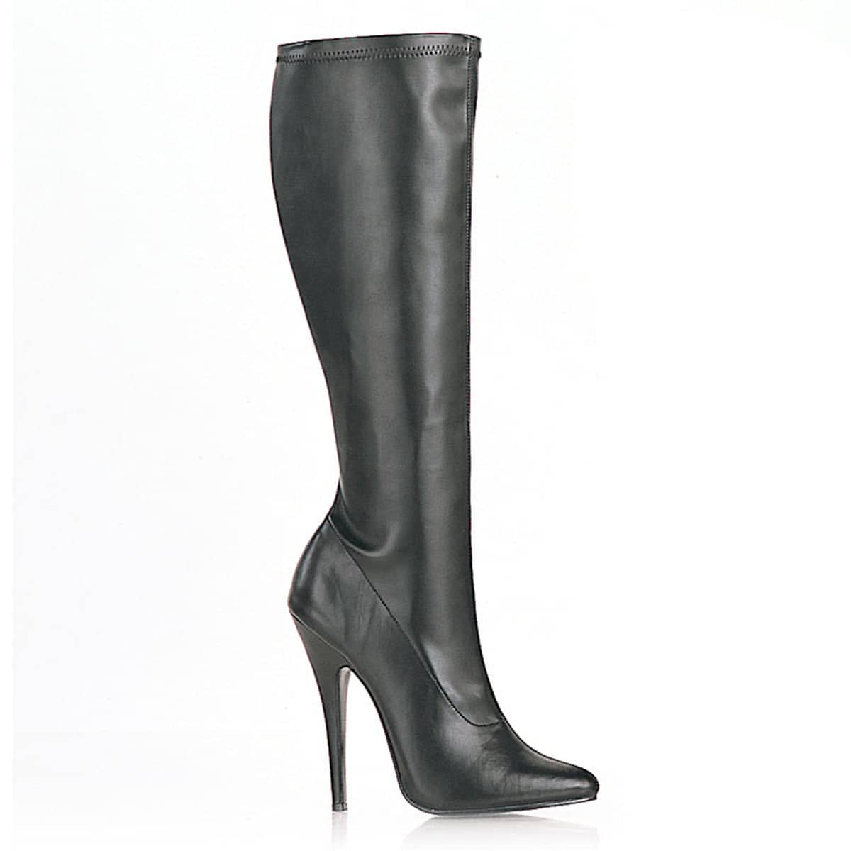 Domina 2000 Faux Leather Black Stiletto Knee High Boots by Pleaser Shoes