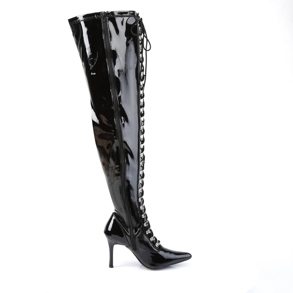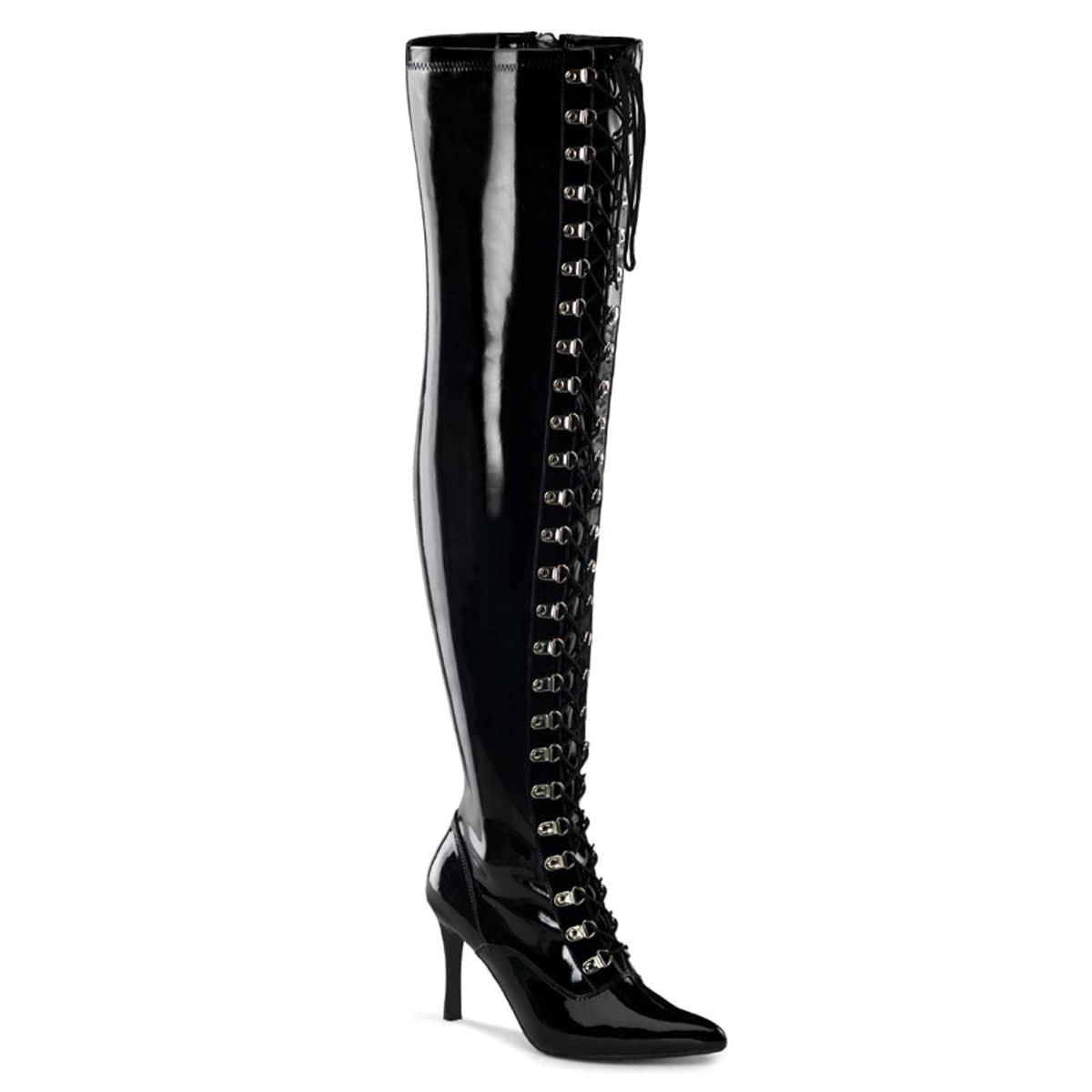 4 (10.2cm) Heel, Wide Width/Shaft, Lace Up Thigh High Boot Full Inner Side Zipper