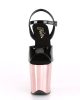 8 (200mm) Heel, 4 (100mm) Platform Two Tone Ankle Strap Sandal Featuring Chrome Plated Platform Bottom