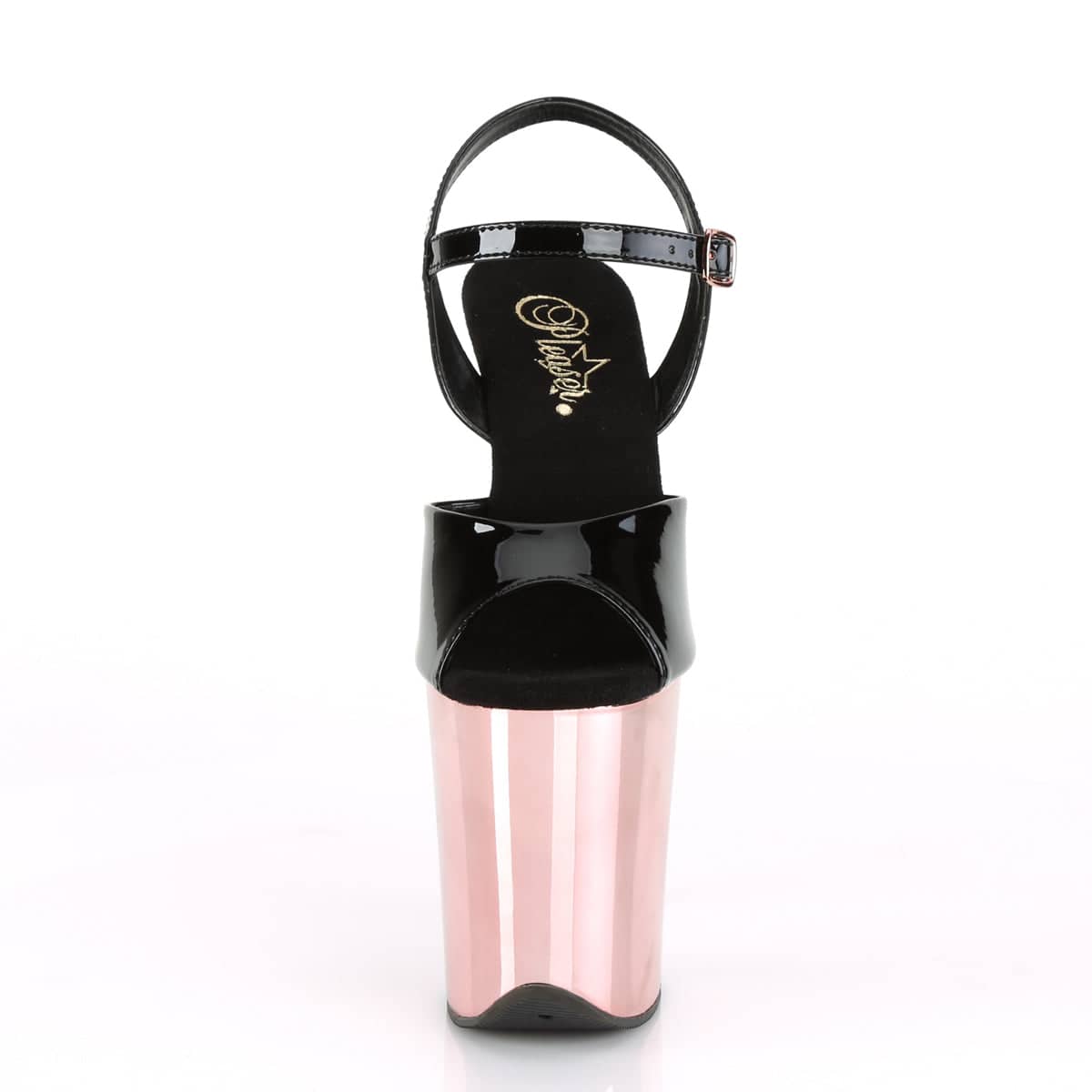 Flamingo 809 Black Patent & Rose Gold Chrome Platform Heels by Pleaser ShoesÂ