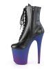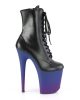 8 (200mm) Heel, 4 (100mm) Platform Lace-Up Ankle Boot Featuring Blue Purple Ombre Platform Bottom, Inside Zipper Closure
