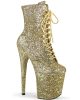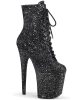 8″ (200mm) Heel, 4″ (100mm) Platform Lace-Up Front Glitter Ankle Boot Featuring Fully Wrapped Platform Bottom, Inside Zip Closure