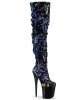 Flamingo 3004 Black and Blue Sequin Thigh Boots by Pleaser Shoes
