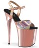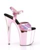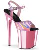 Stand out from the crowd in these gorgeous eight inch holographic and chrome pole dancing platforms. These sexy high heels come with a flattering peep toe and ankle strap, a classic design from Pleaser.