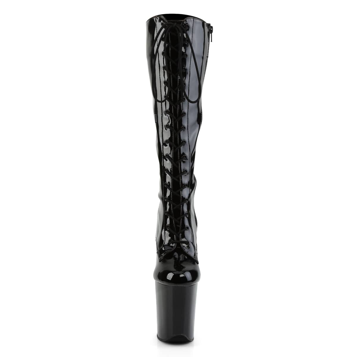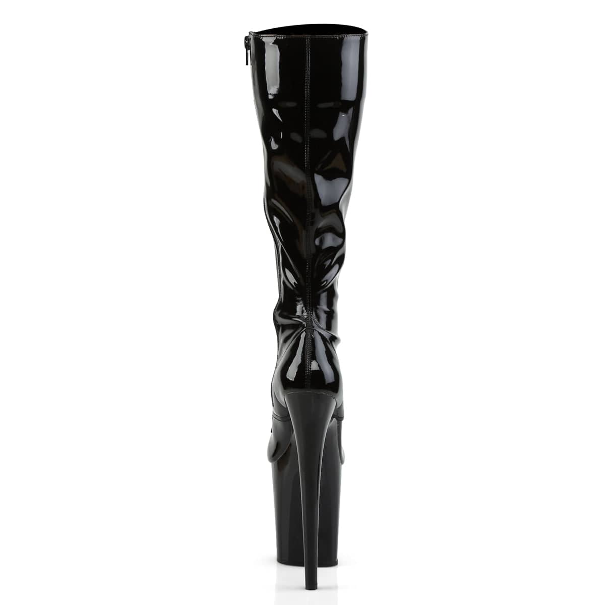 Flamingo 2023 Black Patent Knee High Boots by Pleaser Shoes
