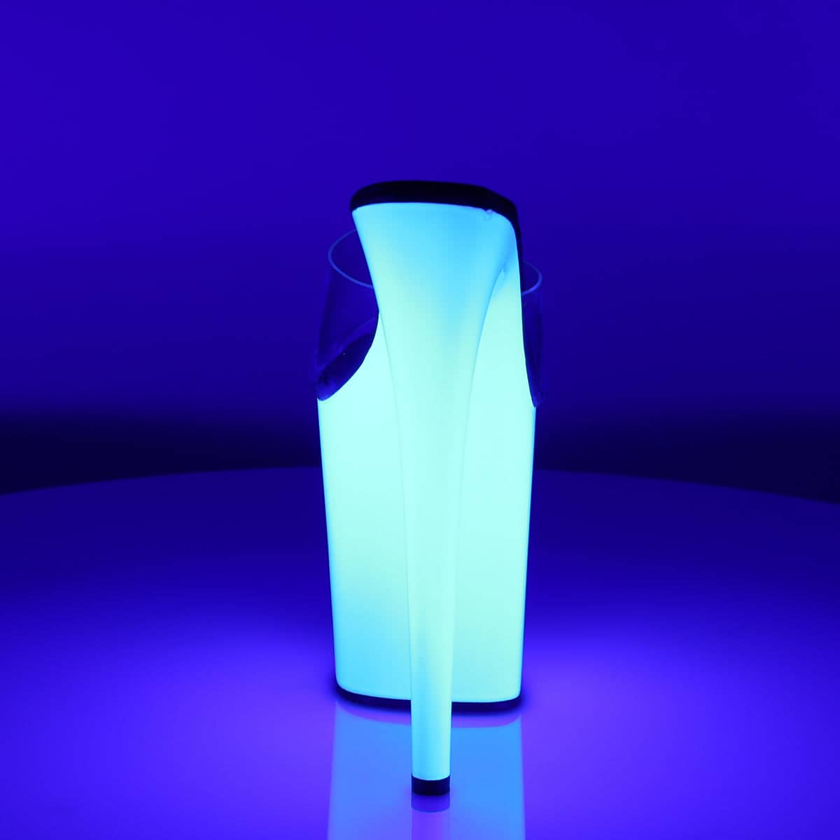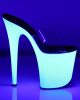 Glow in the dark in these sexy UV high heels by Pleaser. These eight inch pole dancing platforms are stunning and the platforms are completely neon UV reactive!