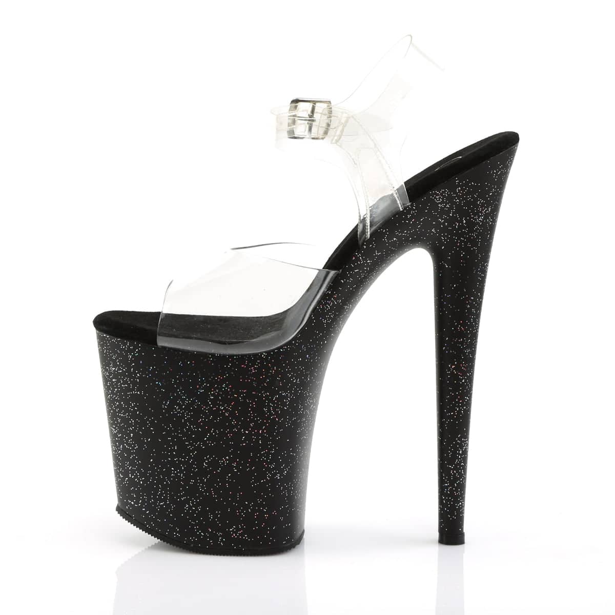 8 (20.3cm) Stiletto Heel, 4 (10.2cm) Platform Ankle Strap Sandal Featuring Mini Iridescent Glitter on the Entire Platform