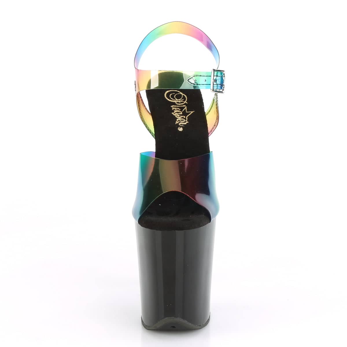 8 (200mm) Heel, 4 (100mm) Platform Ankle Strap Sandal Featuring Rainbow Effect Upper
