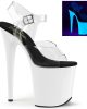 Glow in the dark in these sexy UV high heels by Pleaser. These eight inch pole dancing platforms are stunning and the platforms are completely neon UV reactive!