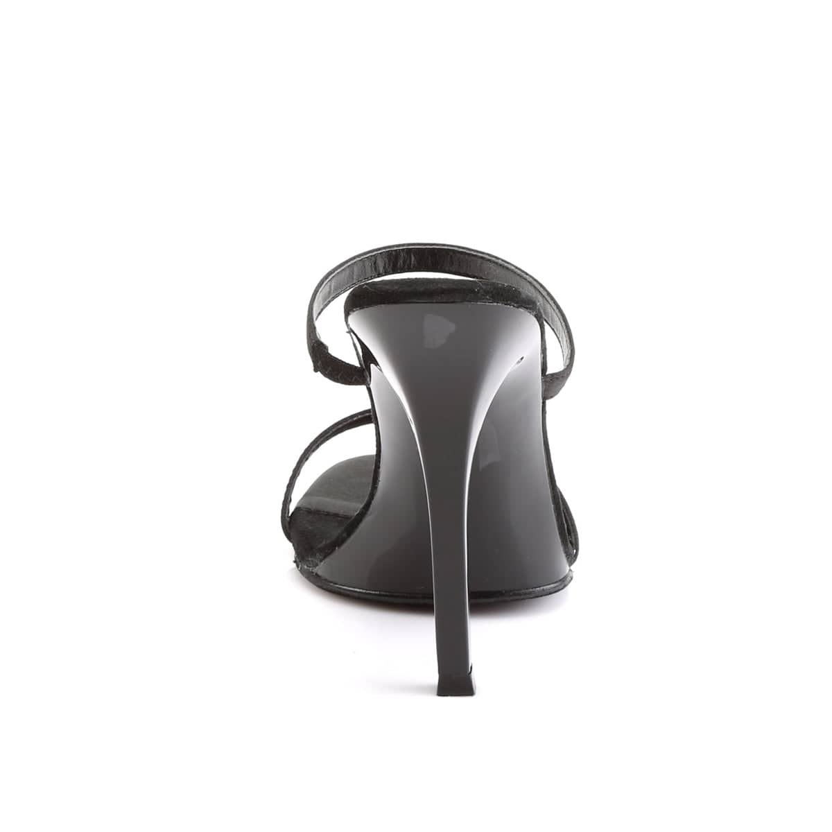 Double strap satin mule with one strap around the toes and another one in instep area. The soft tone-to-tone cushioning and the 4.5 inch (11.5 cm) high stiletto heels add comfort and style, respectively, so that you can enjoy a sexy, simple and easy to wear sandals.Â