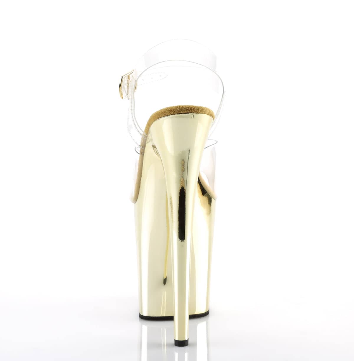 FLAMINGO-808 Clear & Gold Ankle Peep Toe High Heel