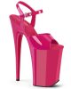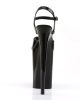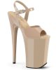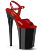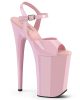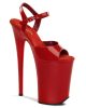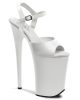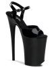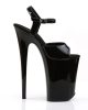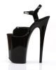 9 (230mm) Heel, 5 1/4 (135mm) Platform Ankle Strap Sandal Featuring Chrome Plated Bottom. Warning: Extreme High Heels. Not Recommended for Walking or Dancing.