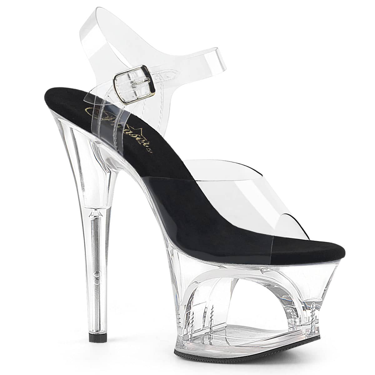 Moon 708 Black & Clear Platform Heels by Pleaser Shoes