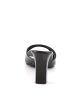 Delicate black sandals with single strap in toe area. The inner sole is padded with soft fabric for added comfort and great feel. The front square sole is contrasted by the 3 inch (7.5 cm) high heels for a uniform look. Classy and comfortable, they can be used as statement items in a casual look or paired with club wear when you want to dance the night away!