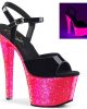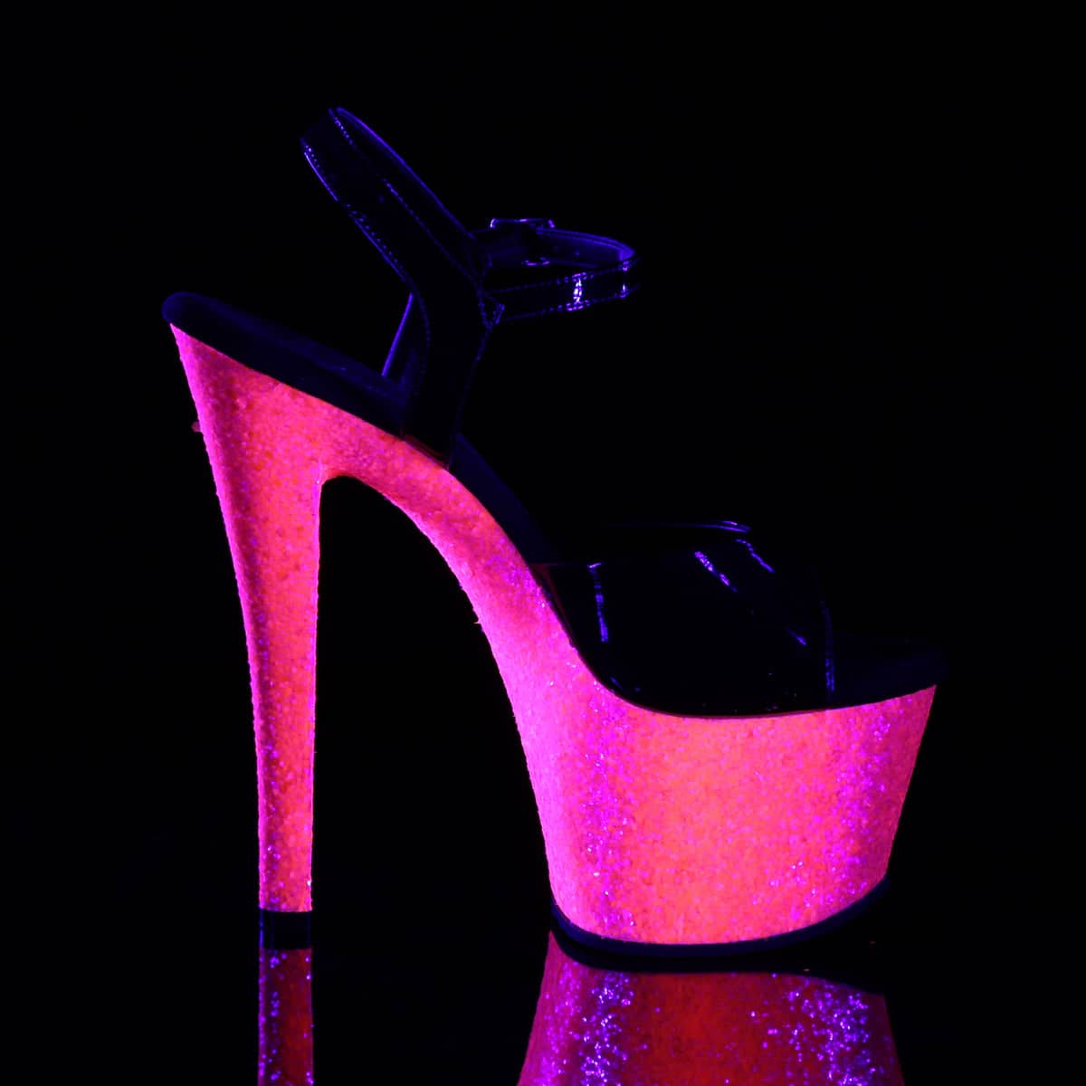 7 (178mm) Heel, 2 3/4 (70mm) Platform Featuring Blacklight Reactive Glitters on the Entire Platform Bottom
