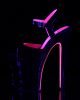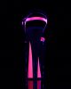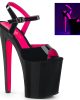 8 (20.3cm) Heel, 4 (10.2cm) Platform Two Tone Ankle Strap Sandal Featuring Neon Hot Pink UV Blacklight Effect