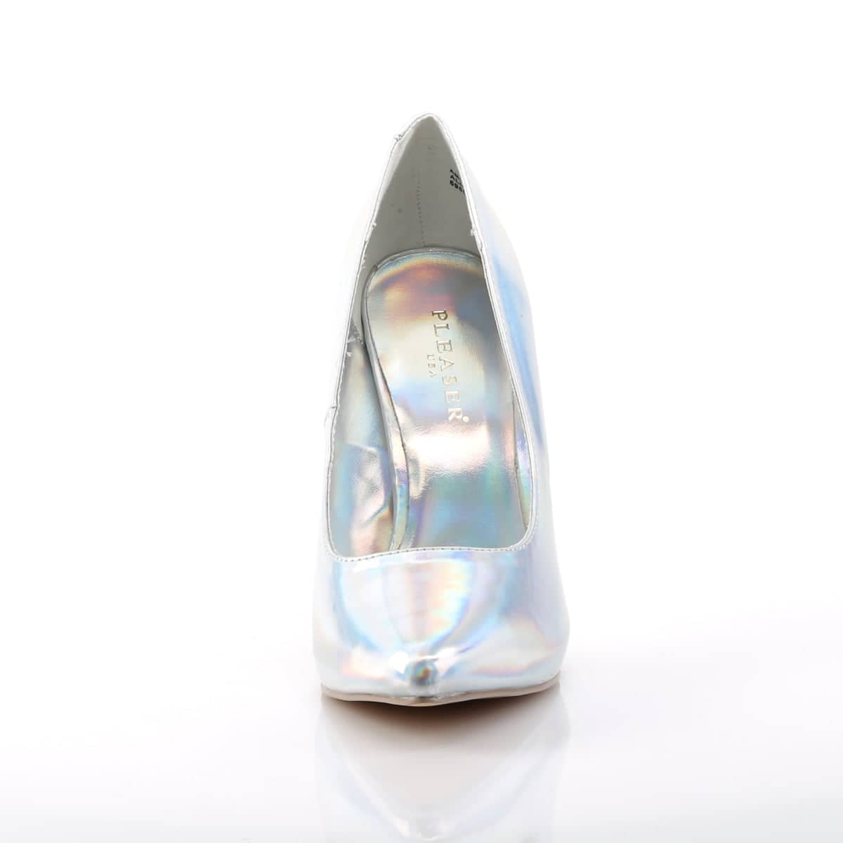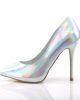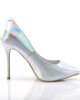 Amuse 20 Iridescent Stilettos by Pleaser Shoes. A sexy court shoe in a white and silver hue with a holographic effect.