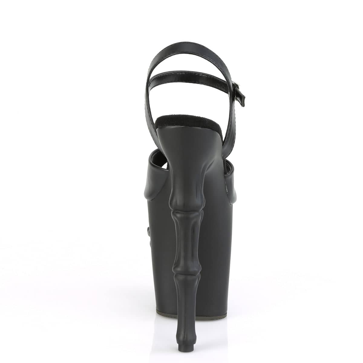 Indulge in pure pleasure with our RAPTURE-809 Sexy Shoes in vegan black faux leather and matte finish. This flirty ankle strap sandal features a daring 8″ finger bone heel and 4″ platform with skull & bones details for a touch of edgy delight. Get ready to turn heads! Style code: RAPTURE-809.