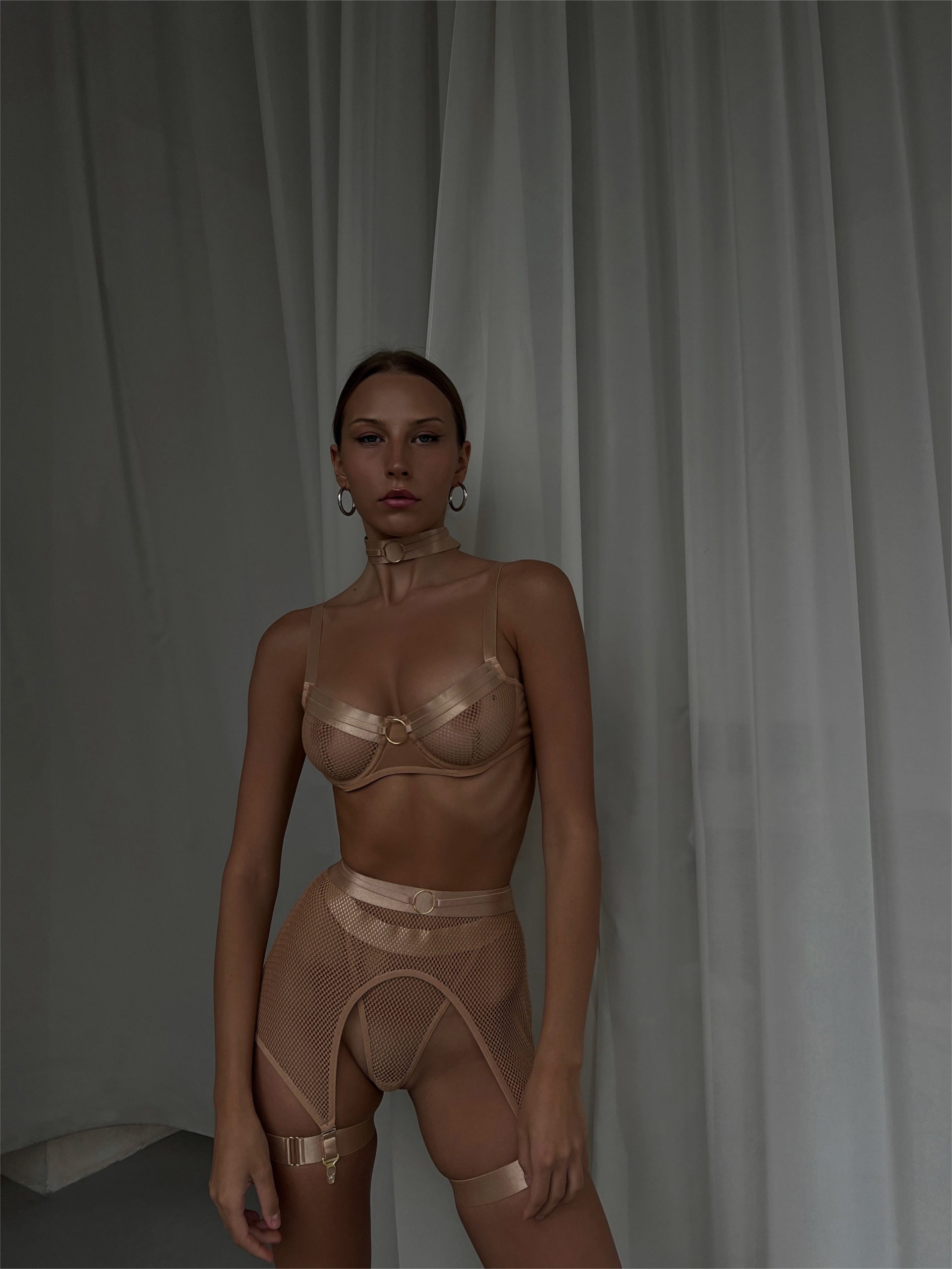 RAVENOUS 4 Piece Nude Mesh Lingerie Set