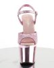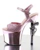 Step out in style with REVOLVER-709G! These vegan pink multi glitter shoes are the perfect addition to your shoe collection. With a 7″” rhinestone embellished gun heel and 3 1/4″” platform, these flirty ankle strap sandals are sure to turn heads. Get ready to make a bold statement with these sexy shoes!