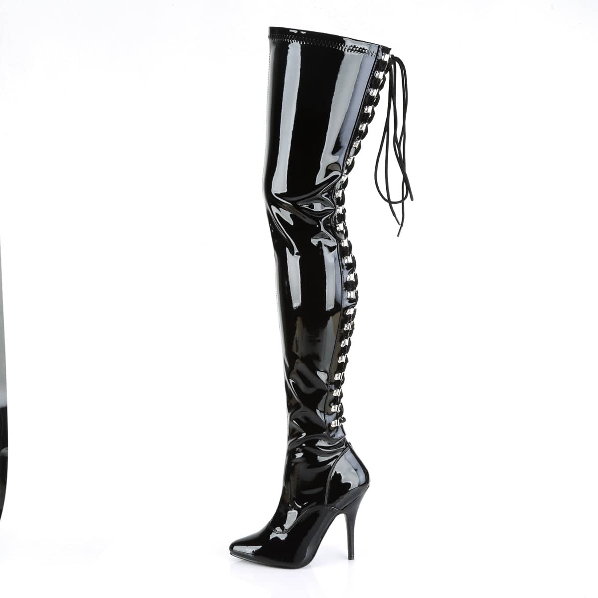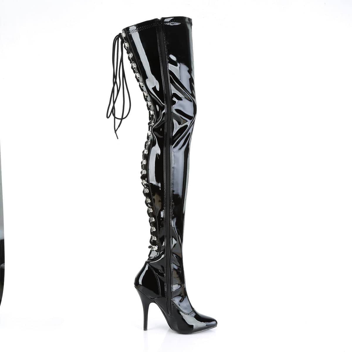 5 inch sexy high heel thigh boots with back-lace-up detail.