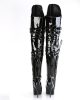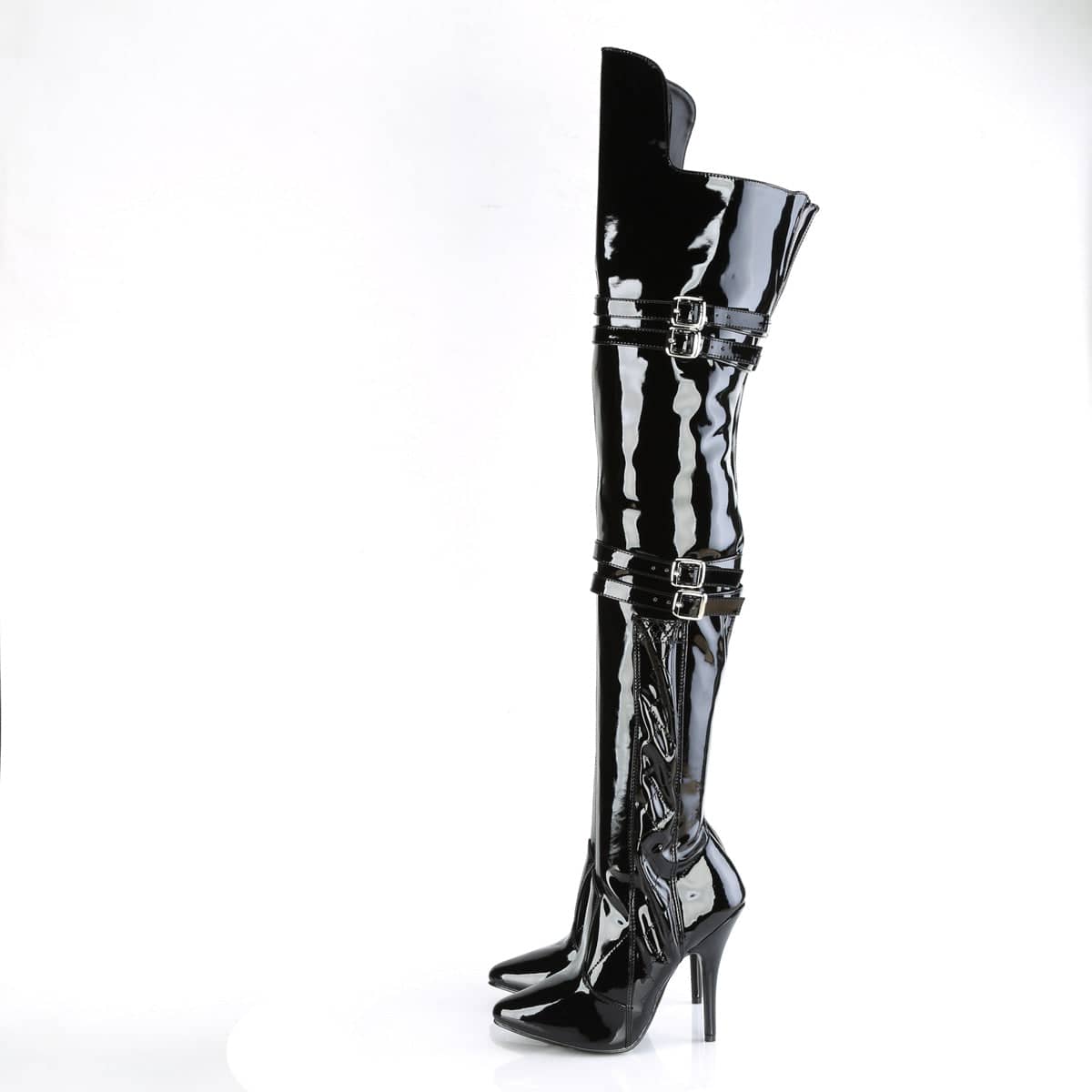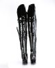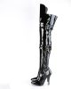 Bawdy and Body in Black. From our Seduce line comes a pair of these stretchy boudoir black boots in a powerful patent. Dominating up to thigh high with 5” heels and an 18” whip, you’ll be ready for any shade of grey during night or day. Just buckle the straps, zip up the side, and tell your partner to hide!