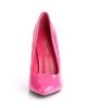 Hot pink patent shoes with pointed toe, V-shaped topline and front flat sole contrasted by the 5 inch (12.5 cm) high stiletto heels with pink patent overlay. The sassy foot arch shapes the foot for a super sexy look. Daring and chic, these shoes add a touch of colour to your outfits for a wow look.