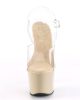 Introducing SKY-308: the ultimate vegan-friendly ankle strap sandal that screams sexy and flirty! With a 7″ heel and 2 3/4″ platform, this clear shoe will elevate any outfit. Perfect for a night out, or for bringing out your inner vixen. Get your hands on these sexy shoes and strut your stuff!