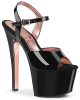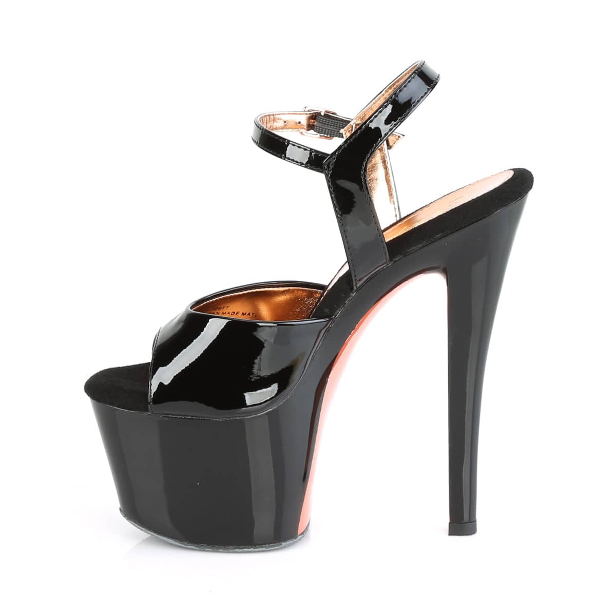Vamp up your shoe game with SKY-309TT Two Tone Ankle Strap Sandal! The seductive Black, Rose Gold colour combo + a 7″ (178mm) heel and 2 3/4″ (70mm) platform make these a perfect addition to your wardrobe. Chrome Plated Platform Underside & Front of Heel add an extra spicy touch. All vegan materials!