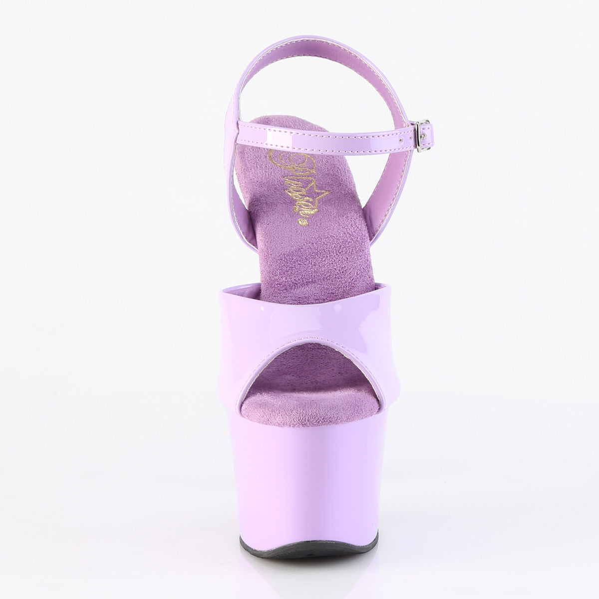 Made to impress, these sensational platform shoes will add that much-desired height and allure to your outfit. The SKY-309 Lavender Platform Sandal from the renowned brand Pleaser, encapsulates style, charm, and comfort in one stunning package.