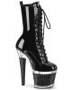 Flaunt your sexy side with our vegan Black Pat/Clr-Blk Spectator Ankle Boot. With a killer 7″ heel and flirty 3″ textured PF lace-up front, you’re sure to turn heads. Complete with side zip for easy wear, this Black beauty is the perfect accessory for any daring outfit. Style code: SPECTATOR-1040.