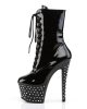 Get ready to turn heads with our STARDUST-1020-7 Vegan Ankle Boots! These sexy black heels will make you feel flirty and feminine with their sparkling rhinestone-studded platform and front lace-up design. With a 7″” heel and 2 3/4″” platform, you’ll tower over the competition while staying comfortable thanks to their vegan materials. Step out in style with the STARDUST-1020-7!