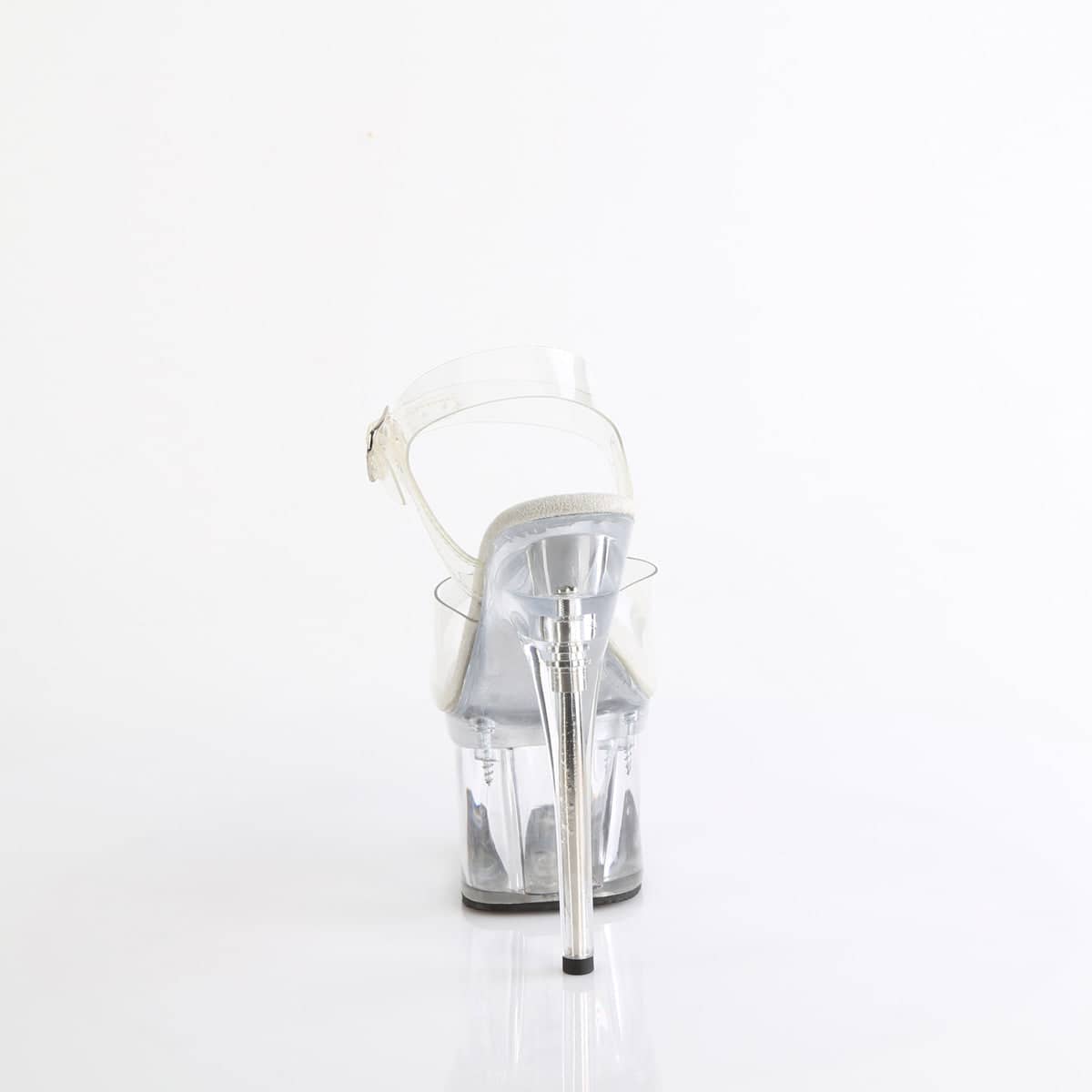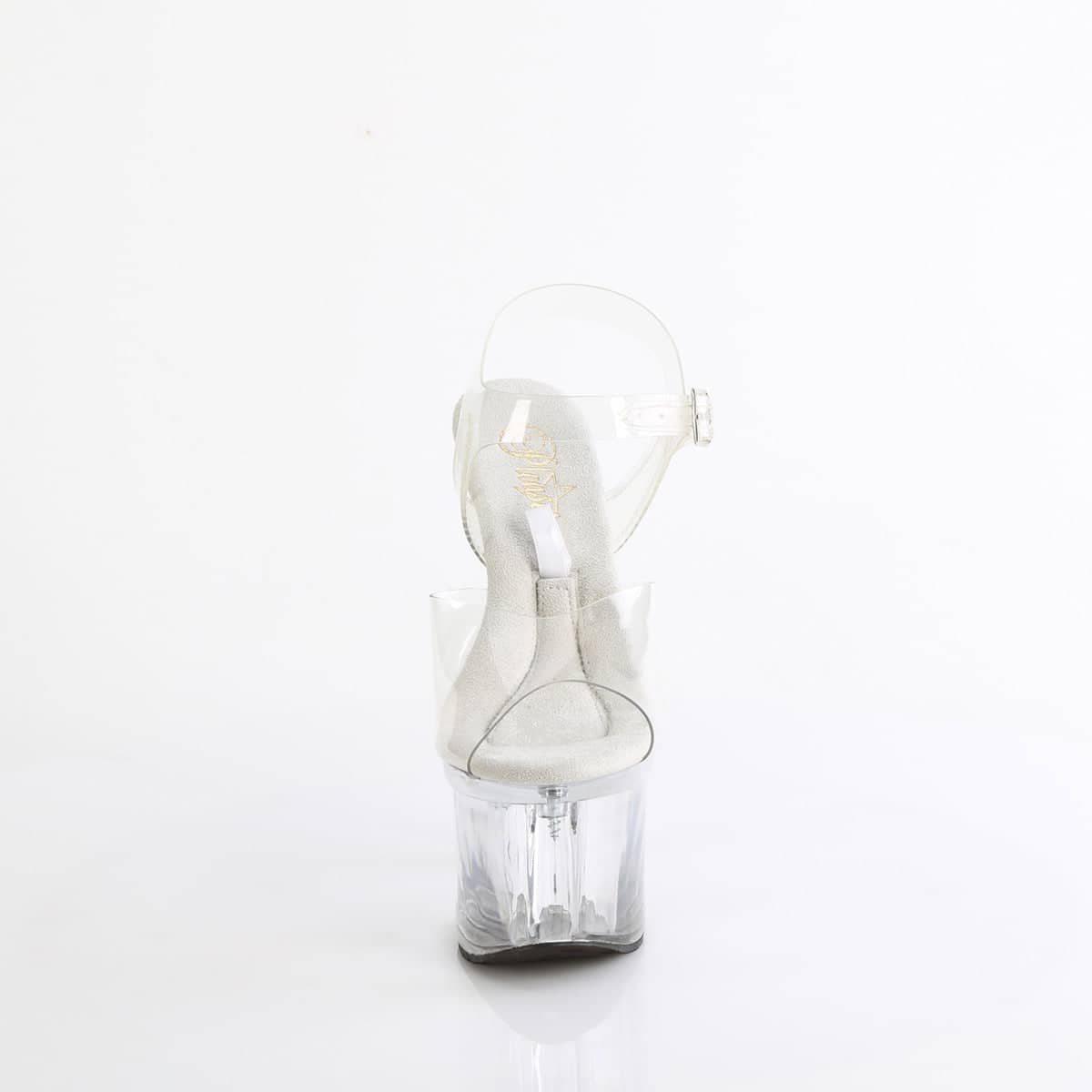 Get ready to turn heads with TREASURE-708EST – the sexiest ankle strap sandal you’ll ever own! These 7″ heels with a 3 1/4″ platform will elevate any outfit and make you feel like a goddess. It even features a base compartment accessible from the insole for a cheeky surprise. And the best part? These shoes are 100% vegan. Make a statement with our clear CLR/CLR TREASURE-708ESTs.