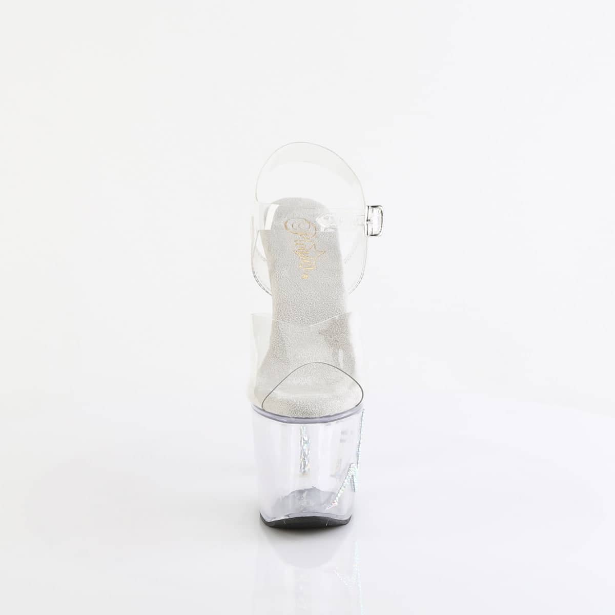Crafted with the utmost attention to detail, these sandals showcase Pleaser’s signature style which includes aspects of Glitter, Print, Metallic, and Embellished. The clear shoe_type adds to the ethereal appeal of these platform shoes.