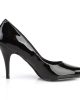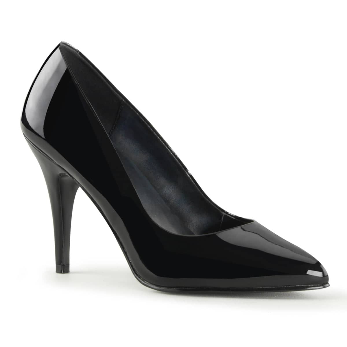 The Vanity 420 are classic black patent 4 inch heels ready for every day. A simple, sexy and elegant shoe with a mid-sized heel that can add femininity and class to any outfit, day or night. Comfortable and simple with a pointed toe that really flatters the leg.Â